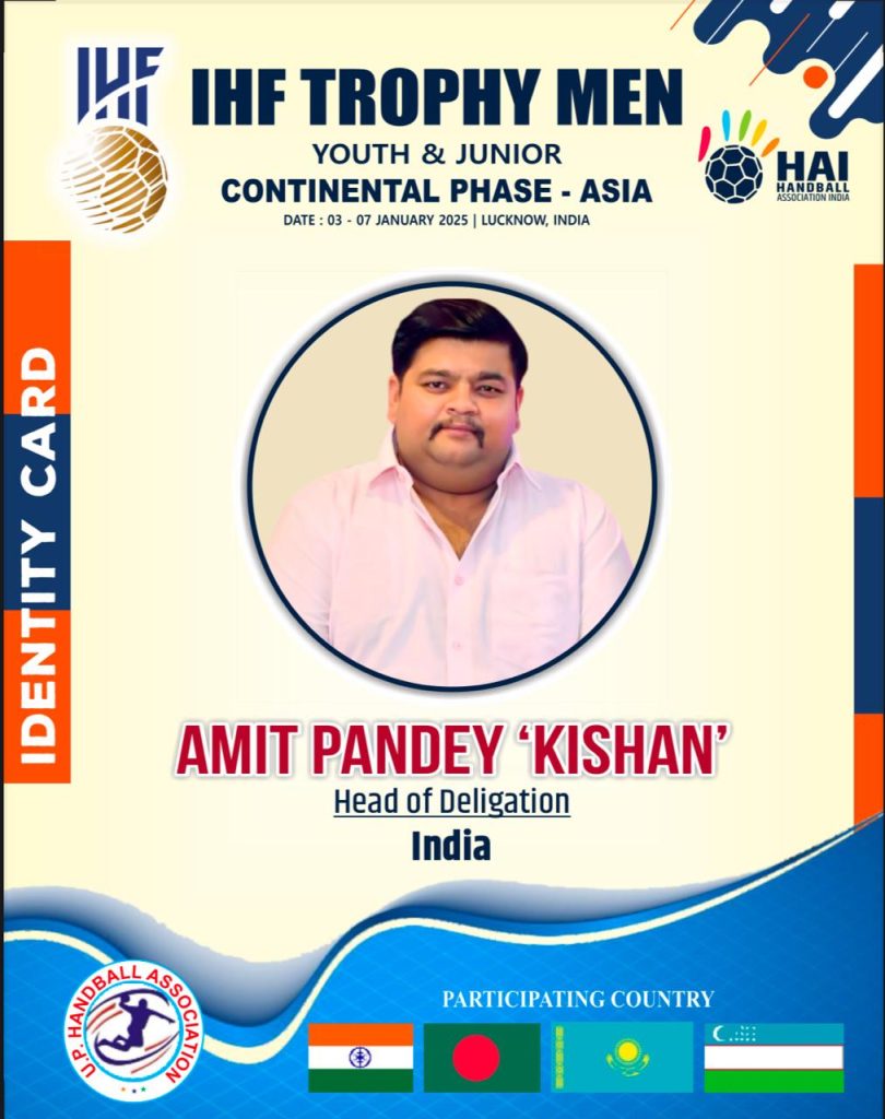 वाराणसी। हैंडबॉल एसोसिएशन आफ इंडिया इस बार उत्तर प्रदेश के इतिहास मे पहली बार आई एच एफ मेन्स यूथ एवं जूनियर वर्ग की प्रतियोगिता डॉ अटल बिहारी वाजपेयी इंडोर स्टेडियम लखनऊ मे दिनांक 3 से 7 जनवरी 2025 तक आयोजित करने जा रही है। जिसमे वाराणसी हैंडबॉल संघ के अध्यक्ष अमित पांडेय किशन को भारतीय टीम का हेड ऑफ़ डेलीगेशन इंटरनेशनल हैंडबॉल एसोसिएशन नियुक्त किया है।